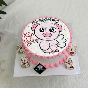 Bánh kem sinh nhật vẽ hình con heo tuổi hợi đáng yêu tặng bé gái
