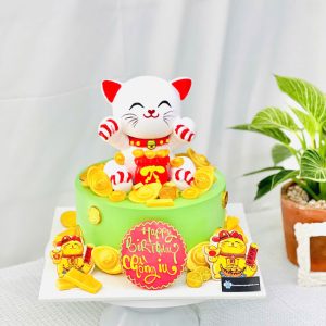 Bánh sinh nhật tạo hình 3d mèo thần tài may mắn độc đáo tặng nam