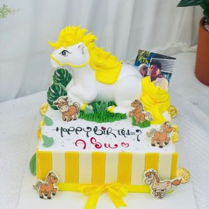 Bánh sinh nhật tạo hình 3d con ngựa tuổi ngọ màu vàng tặng nam