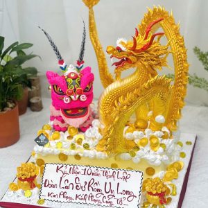 Bánh sinh nhật tạo hình 3d con rồng tuổi thìn mạ vàng cực hoành tráng