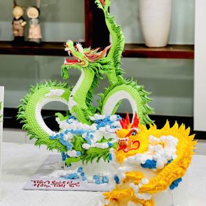 Bánh sinh nhật tạo hình 3d con rồng tuổi thìn màu xanh lá, màu đỏ cực ngầu