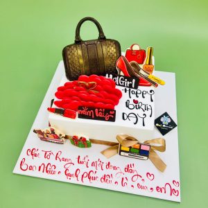 Bánh sinh nhật tạo hình 3d túi xách và giày trang trí tim đỏ đẹp mắt tặng nữ