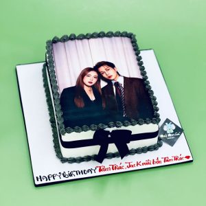 Bánh sinh nhật in hình ăn được viền kem trắng độc đáo sang trọng tặng nữ