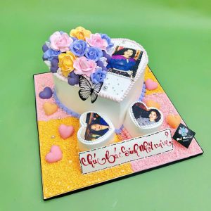 Bánh sinh nhật in hình trái tim bắt hoa hồng đủ màu sắc đẹp mắt tặng nữ