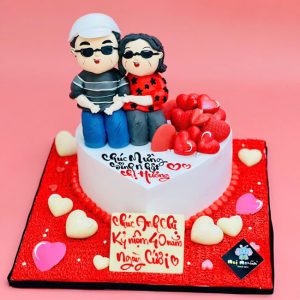 Bánh sinh nhật tạo hình 3d anh chị và trái tim mừng kỷ niệm ngày cưới