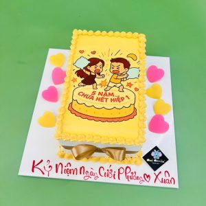 Bánh sinh nhật vẽ hình chibi ngộ nghĩnh đáng yêu kỷ niệm ngày cưới