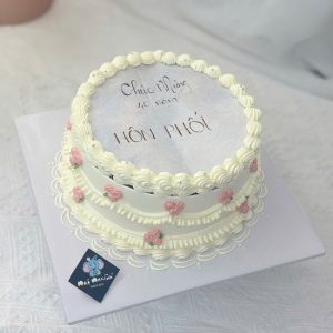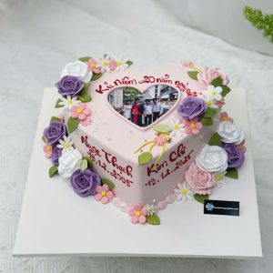 Bánh sinh nhật in hình trái tim bắt hoa hồng xinh xắn đáng yêu kỷ niệm