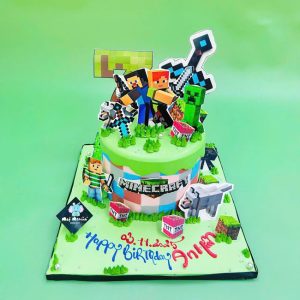 Bánh sinh nhật trang trí chủ đề nhân vật hoạt hình Mine Craft tặng bé trai