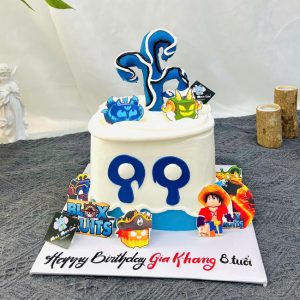 Bánh sinh nhật trang trí gậy và nhân vật hoạt hình Blox Fruit tặng bé trai