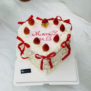 Bánh kem sinh nhật trái tim trắng trang trí dâu tây và nơ xinh xắn tặng nữ