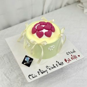 Bánh sinh nhật trang trí tim socola đỏ và nơ kem đáng yêu tặng bà nội