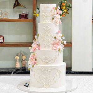 Bánh sinh nhật tạo hình hoa xinh xắn 4 tầng màu trắng sang trọng