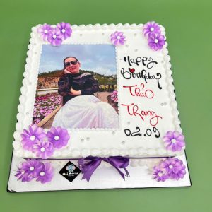 Bánh sinh nhật in hình ăn được trang trí hoa tím đáng yêu tặng nữ