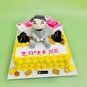 Bánh sinh nhật tạo hình 3d người nam và tiền đô độc đáo tặng sếp