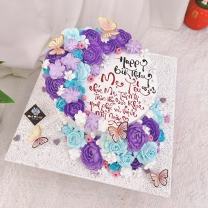 Bánh kem sinh nhật trang trí dãy hoa xinh xắn đáng yêu tặng nữ