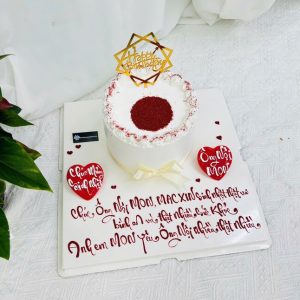 Bánh sinh nhật trang trí tim socola đỏ và nơ kem đáng yêu tặng bà nội