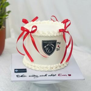 Bánh sinh nhật in hình logo xe peugeot cột nơ độc đáo tặng nữ