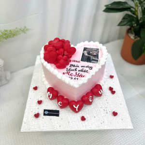 Bánh sinh nhật in hình trái tim trang trí tim đỏ đẹp mắt tặng mẹ