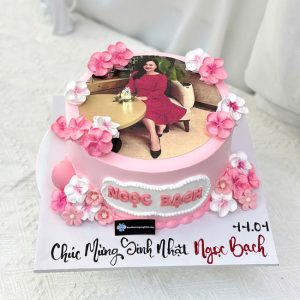Bánh sinh nhật in hình ăn được góc bắt hoa nhỏ xinh xắn đáng yêu