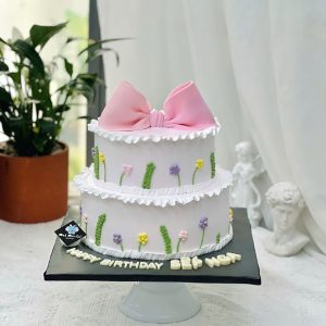 Bánh kem sinh nhật 2 tầng trang trí chiếc nơ hồng xinh xắn đáng yêu