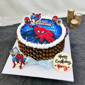 Bánh sinh nhật in hình siêu nhân nhện viền bánh quế đáng yêu tặng nam