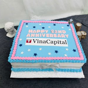 Bánh sinh nhật in hình logo trang trí sao nhỏ mừng sự kiện Vina Capital