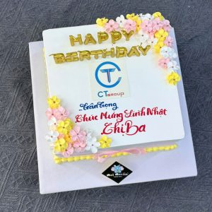 Bánh sinh nhật in hình logo công ty góc bắt hoa xinh xắn tặng khách hàng