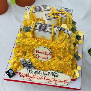 Bánh sinh nhật tạo hình 3d cọc tiền đôla 2 tầng độc đáo tặng giám đốc