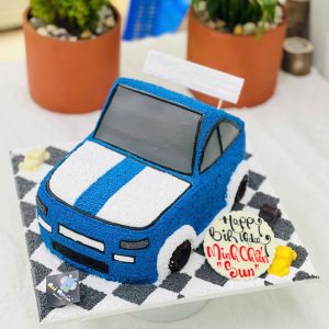 Bánh sinh nhật tạo hình 3d chiếc xe đua màu xanh độc đáo tặng bé trai