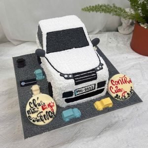 Bánh sinh nhật tạo hình 3d chiếc xe màu ghi siêu đáng yêu tặng ba