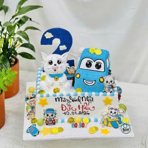 Bánh sinh nhật tạo hình 3d xe ô tô và con mèo siêu dễ thương tặng nam
