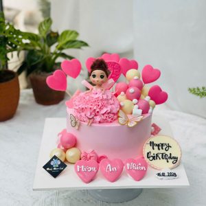 Bánh sinh nhật tạo hình 3d công chúa chibi hồng siêu dễ thương tặng bé