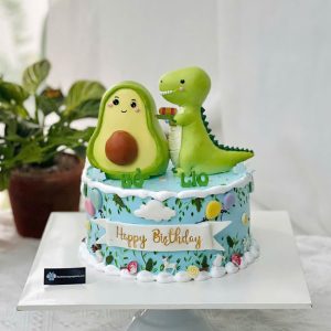 Bánh sinh nhật tạo hình 3d quả bơ và con khủng long siêu đáng yêu