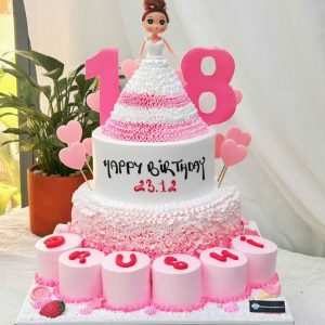 Bánh sinh nhật tạo hình 3d công chúa chibi hồng 2 tầng và bánh nhỏ