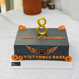 Bánh sinh nhật trang trí logo và số 8 mừng sự kiện Viettools đẹp độc đáo