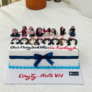 Bánh kem sinh nhật trang trí ảnh chibi các thành viên sự kiện cty AWS VN