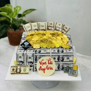 Bánh sinh nhật trang trí đồng tiền vàng và đôla độc đáo tặng nam