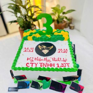 Bánh sinh nhật in hình ăn được gắn tim socola mừng sự kiện công ty