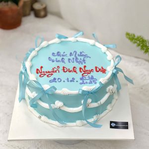 Bánh sinh nhật viết chữ trang trí nơ xanh siêu dễ thương tặng nữ
