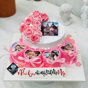 Bánh sinh nhật in hình và bánh nhỏ in hình bắt hoa hồng đẹp mắt tặng mẹ