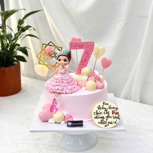 Bánh sinh nhật tạo hình 3d công chúa chibi hồng và số 7 đáng yêu