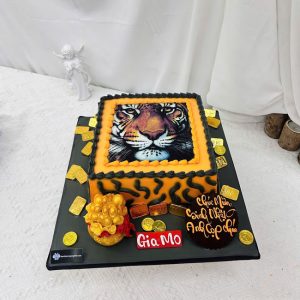 Bánh sinh nhật in hình con cọp tuổi dần và thỏi vàng độc đáo tặng bé trai