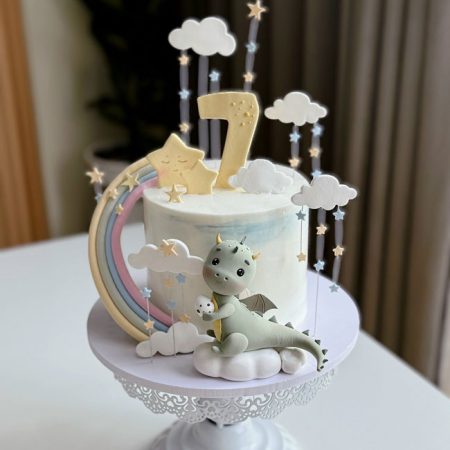 Bánh kem Fondant tạo hình chú khủng long trang trí siêu đáng yêu