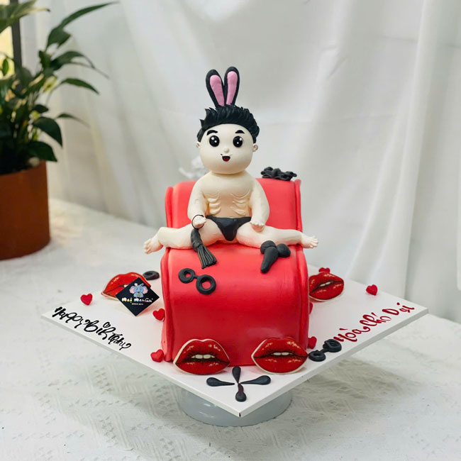 Bánh kem sinh nhật 18+ tạo hình 3d chiếc ghế tình nhân và chàng trai
