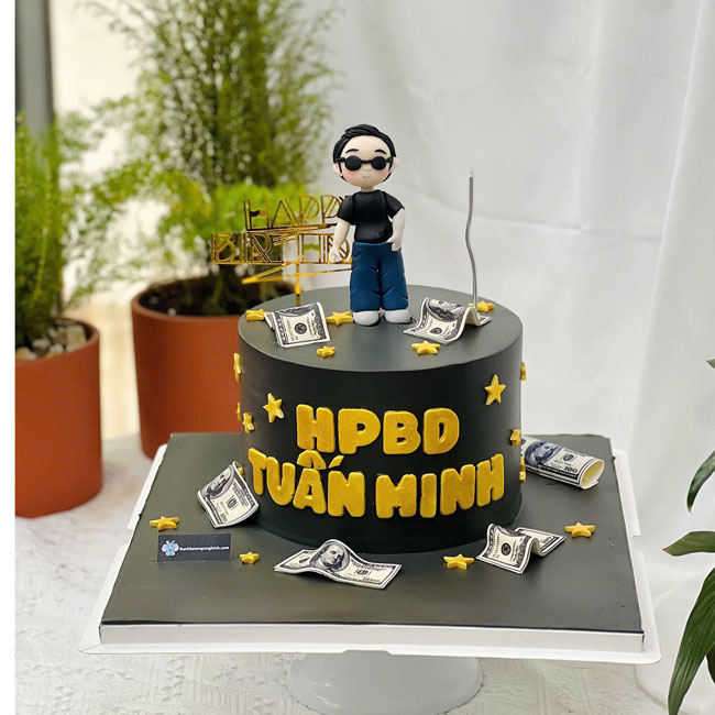 Bánh kem sinh nhật fondant tạo hình 3d chàng trai nền socola độc đáo