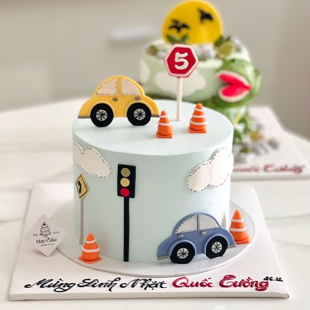 Bánh kem sinh nhật Fondant trang trí xe và đèn giao thông tặng bé trai
