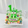 Bánh kem sinh nhật hoạt họa thú ngộ nghĩnh theo kiểu kem chấm tròn có khuôn bánh tròn màu trắng cam