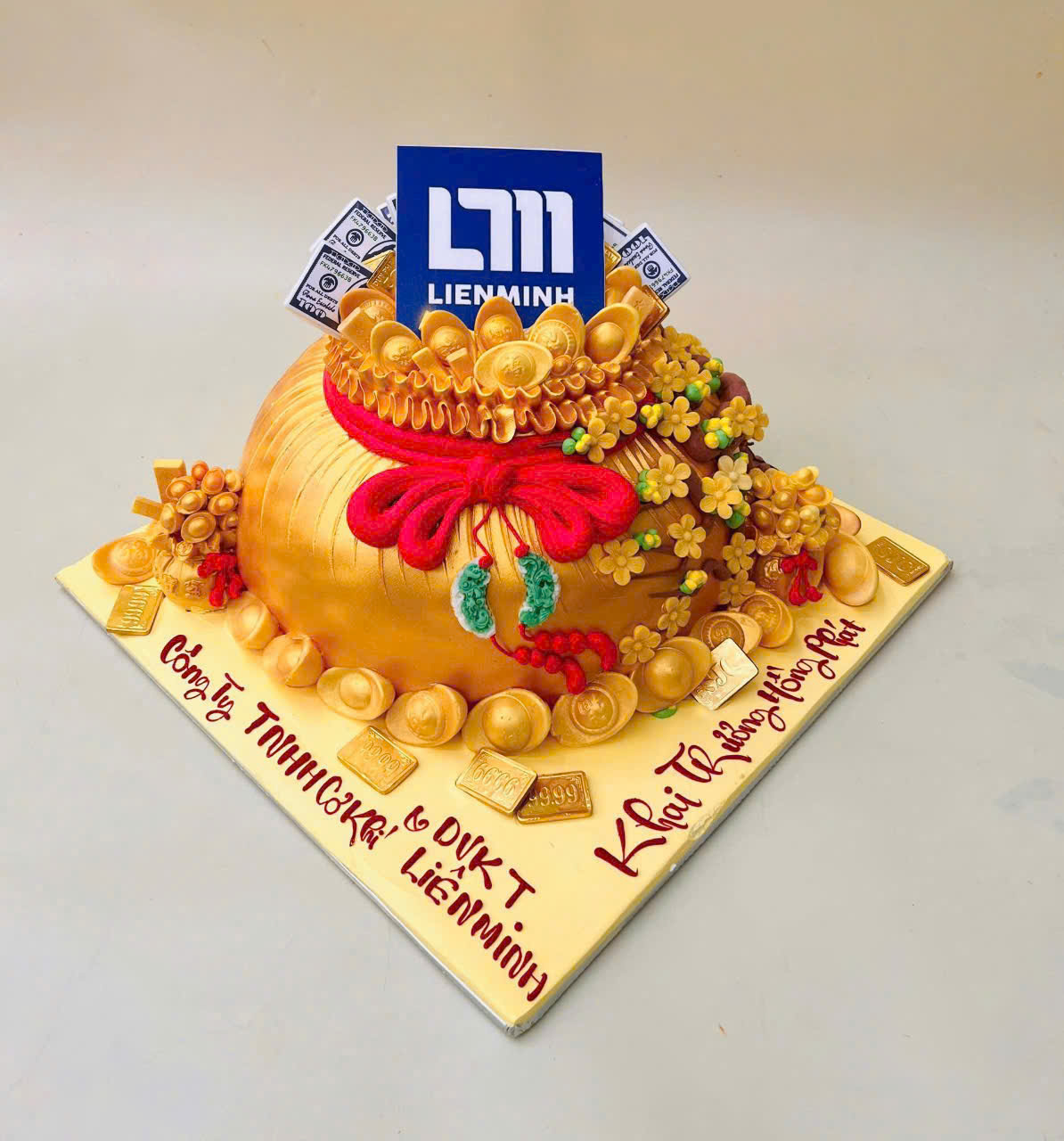 Bánh kem sinh nhật tạo hình 3d hủ vàng sang trọng mừng khai trương