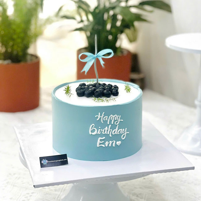 Bánh kem sinh nhật trang trí việt quất nền xanh đơn giản dễ thương tặng nữ