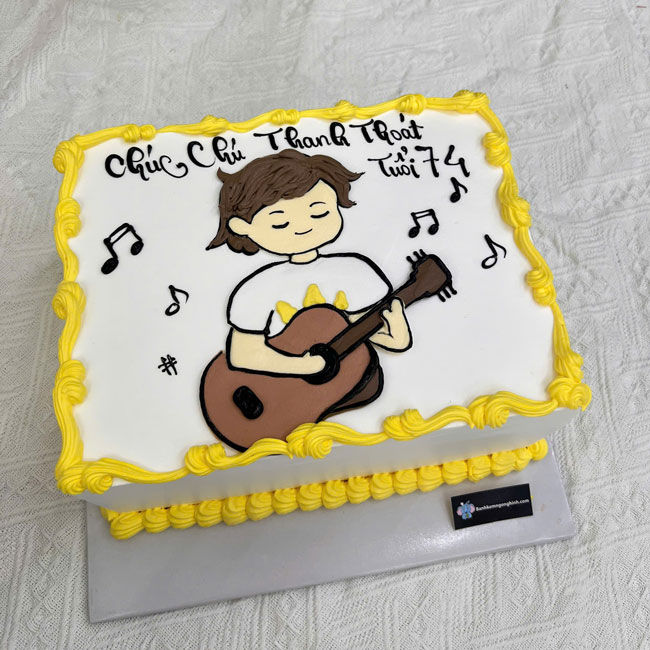 Bánh kem sinh nhật vẽ hình chàng trai và đàn ghita dễ thương tặng nam
